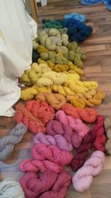 pflanzengefärbte Garne für die Wolldecken - auch als Strickgarn geeignet